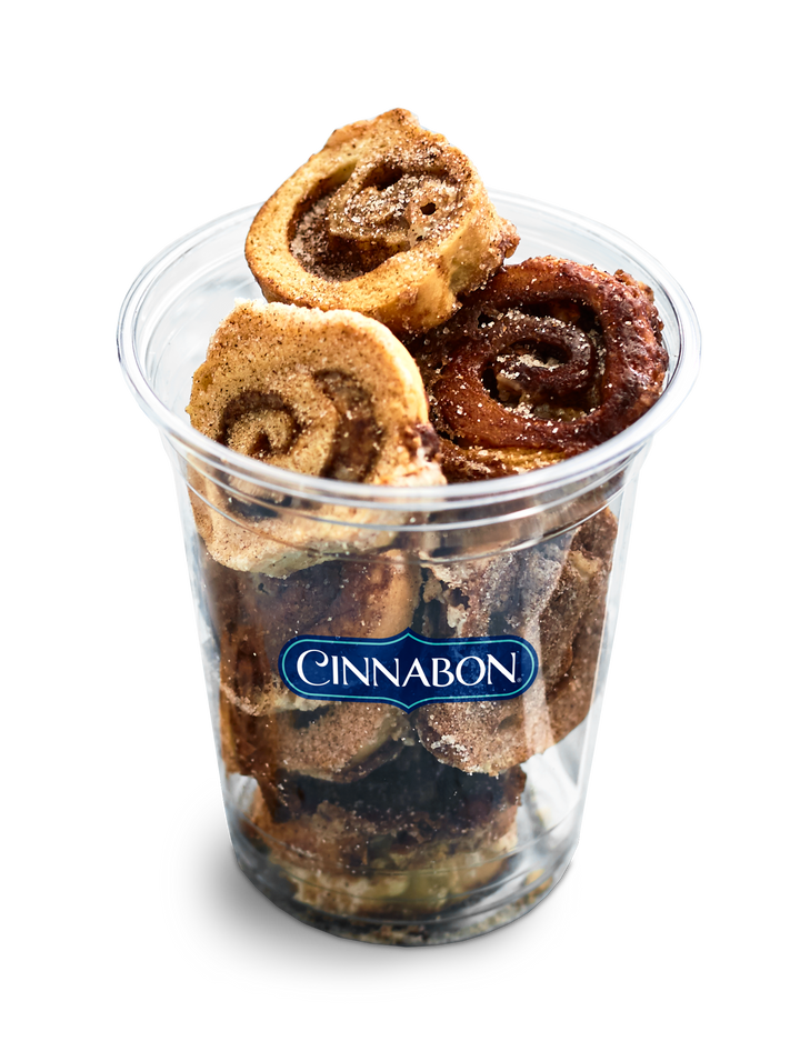Small crunchy pieces of cinnamon rolls, accompanied by exquisite frosting ideal to pick up and enjoy on the go.
